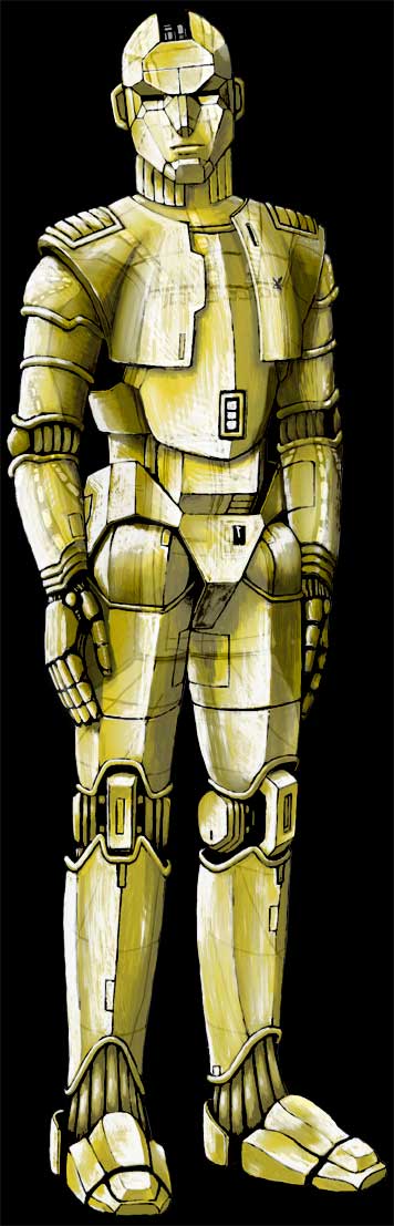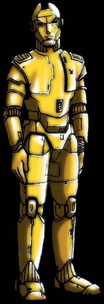 それから塗り。 ほんとはC3POのような、鏡面っぽい処理をしたかったのだが、描き始めたらすっかり忘れてしまい、思い出したのは完成直前・・・(汗) 仕方ないので鏡面処理は今度の機会にする。 まぁ今回のはインゴットみたいな輝きは出たので、ヘビー級サンチョということで勘弁してもらおう・・・・