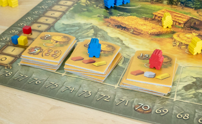 ここで食料が足らなくなると代わりに資材を消費し、それでも足らなくなると勝利点が10点減らされてしまうので、食料枯渇だけは絶対に避けなければならない。