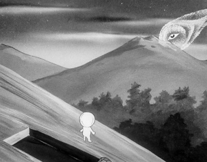 原作であったのびあがりが旅客機を落とすというシチュエーションは無くなっているが、その分人間が木になってしまうというところをクローズアップしており、原作では一緒に村まで来た老人は上記の通りだし、上記の少年も木になってしまった人間は伝染病の感染を防ぐために切り倒されて巨大な穴に捨てられるので、妹がそんなことになるのは不憫で家の中に隠しているなど、原作には無いシチュエーションも素晴らしい内容。