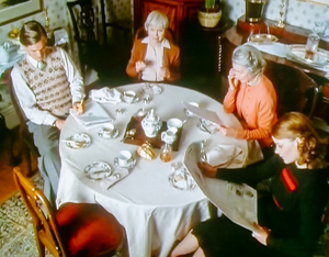 そうこうしているうちにミス・マープルから署長に手紙が来たと思ったら、マープルの影がひたひたと忍び寄り、いつの間にか現地に溶け込んでいるマープル(笑)