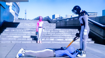 未来はトラックに轢かれそうになった少年をブンピンクになって助けるも、警官に逮捕されてしまう。