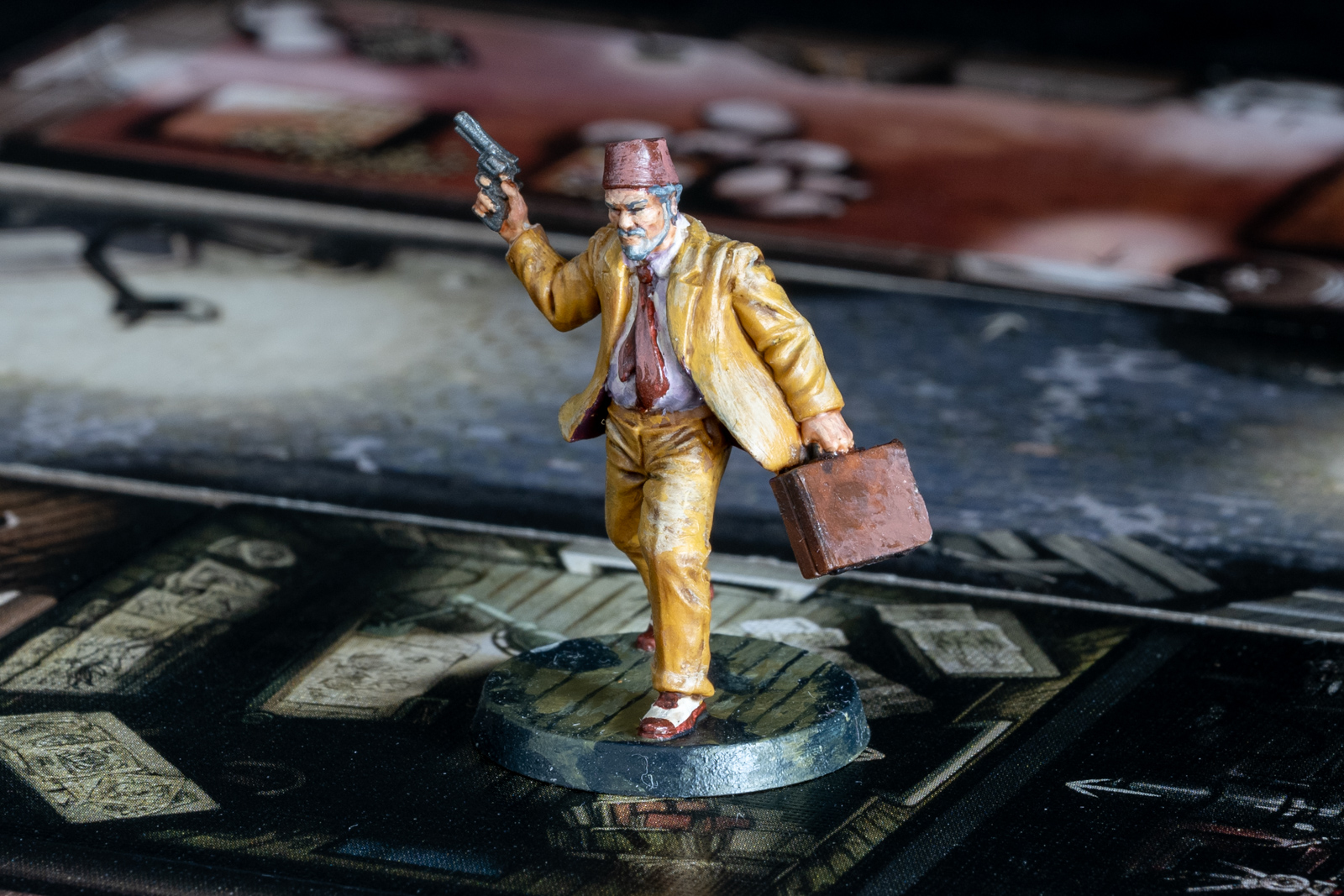 アーメド・ヤシン。ボードゲーム「クトゥルフ 死もまた死すべし」のコマ。 2025年4月13日に完成。 シタデルをメインに、メタリックな部分はラッカーで塗り分けた後、シタデルのシェイドで陰影をつけ、上からハイライトを塗るなど。