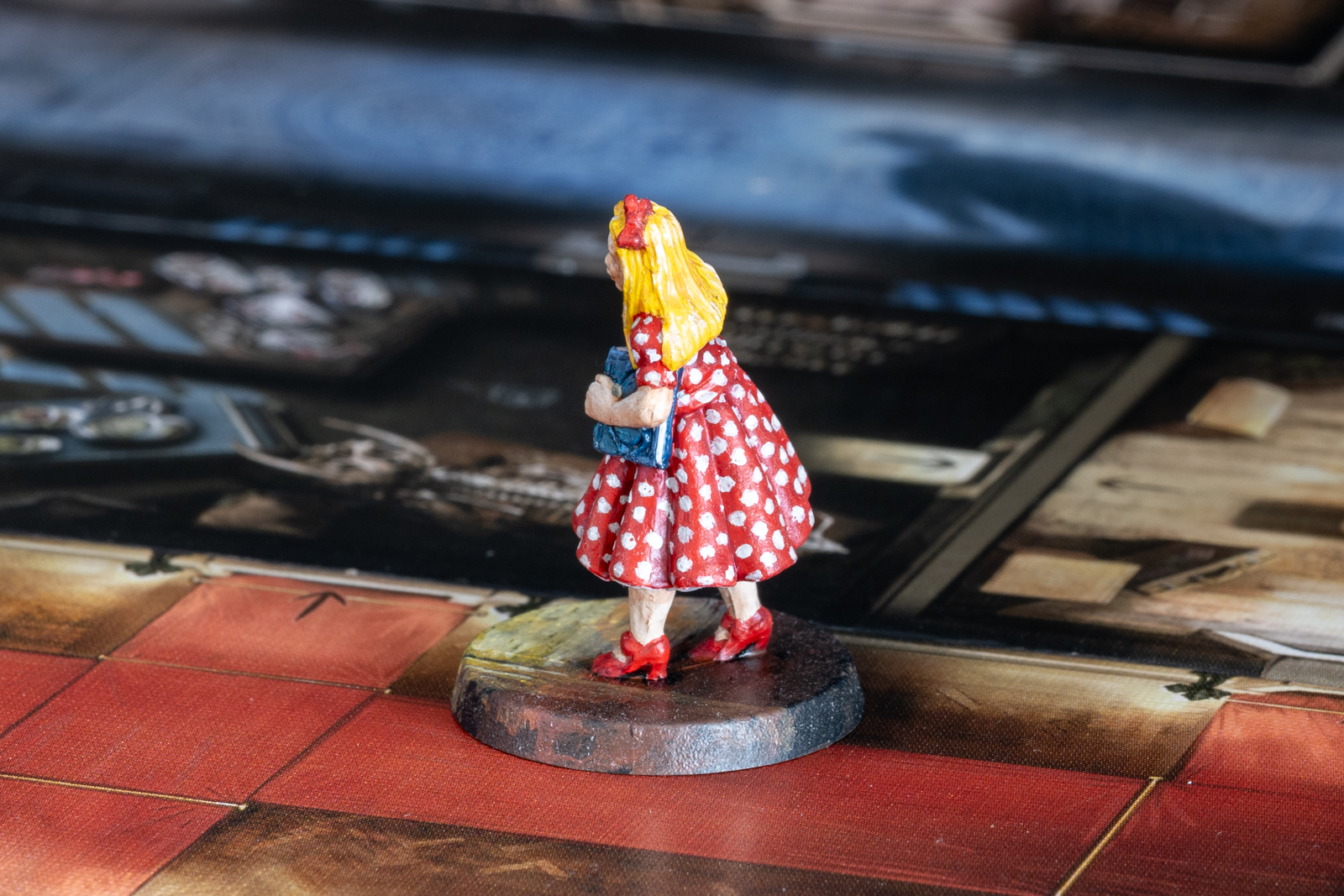 キッド。ボードゲーム「クトゥルフ 死もまた死すべし」のコマ。 2023年6月6日に完成したが土台をあとで加筆した。 シタデルで塗り、目には少しエナメルを使用している。