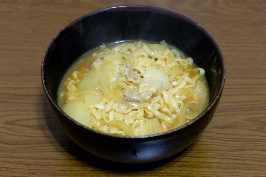 カレー味スープは甘口で、これももう少しコクというか、だし感というかが欲しいところ。
