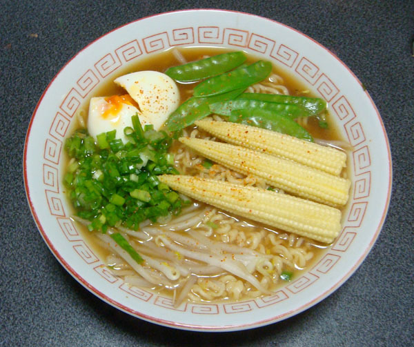 具材:ゆで卵、もやし、ベビーコーン、絹さや、ネギ