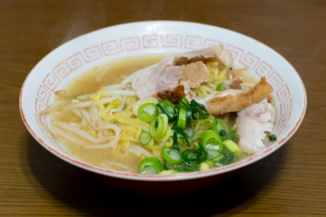 具材はネギとモヤシと醤油豚。