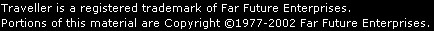 ゼム=ジェイコブ大尉は38才になる.中肉,中背で,小型護衛艦一筋に経歴を積み重ねてきた.海軍から警察への4年間への出向を終え,再び海軍で小型護衛艦の任務につくためにもどってきたのだ.ゼム=ジェイコブ大尉は,標準に比べ進級こそ遅れているものの,卓越した宇宙船操船能力を持ち,宇宙船戦術にも非常に造詣が深い.そして自身優秀な戦闘員でもある.帝国海軍は,彼のこれまでの労に報いるべく,最新の400t小型護衛艦ガグギダスを与えてくれた. |