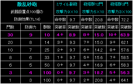 | 表31 散乱砂砲(防御力4)による防御射撃の効果 |