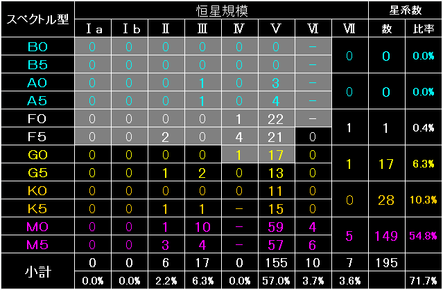 主恒星のスペクトル型と恒星規模を調べてみました。 |