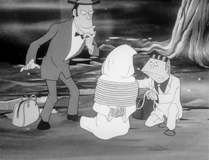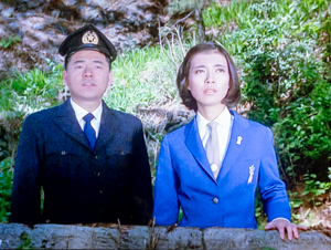 例によっての化夢宇留仁の気になるポイントは、休暇をもらって旅行に行くというフジ隊員が連れがいるというので色めき立つ科特隊員たちだが、その連れはホシノくんで、しかもホテルでもなぜか科特隊のブレザー姿で色気のないことおびただしい(汗)