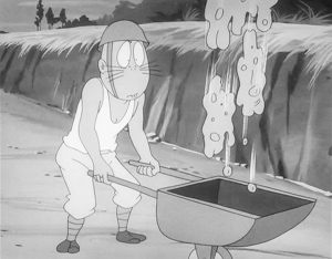 原作では高速道路が鬼太郎の家のあるところを通るというので旅に出た親子が猫の支配する村に行き当たるという展開なのだが、本作ではその工事のところを膨らませて導入としている。