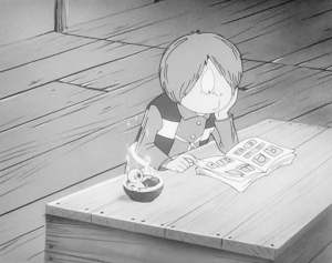 またのびあがりの描写が信じられないほど頑張っており、原作と同等とまではいかないまでも、なんとアニメでも点描で表現しているのだ(汗)