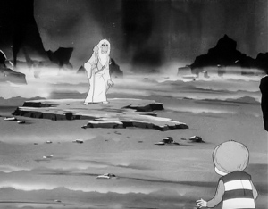 原作であったのびあがりが旅客機を落とすというシチュエーションは無くなっているが、その分人間が木になってしまうというところをクローズアップしており、原作では一緒に村まで来た老人は上記の通りだし、上記の少年も木になってしまった人間は伝染病の感染を防ぐために切り倒されて巨大な穴に捨てられるので、妹がそんなことになるのは不憫で家の中に隠しているなど、原作には無いシチュエーションも素晴らしい内容。