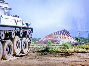 書き忘れていたが、61式戦車(サスも動く非常に精密な模型)とシャーマンの混成部隊がガヴァドンに砲撃しているのも見どころである。
