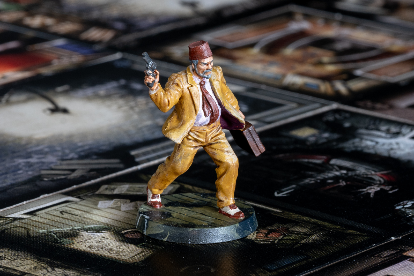アーメド・ヤシン。ボードゲーム「クトゥルフ 死もまた死すべし」のコマ。 2025年4月13日に完成。 シタデルをメインに、メタリックな部分はラッカーで塗り分けた後、シタデルのシェイドで陰影をつけ、上からハイライトを塗るなど。