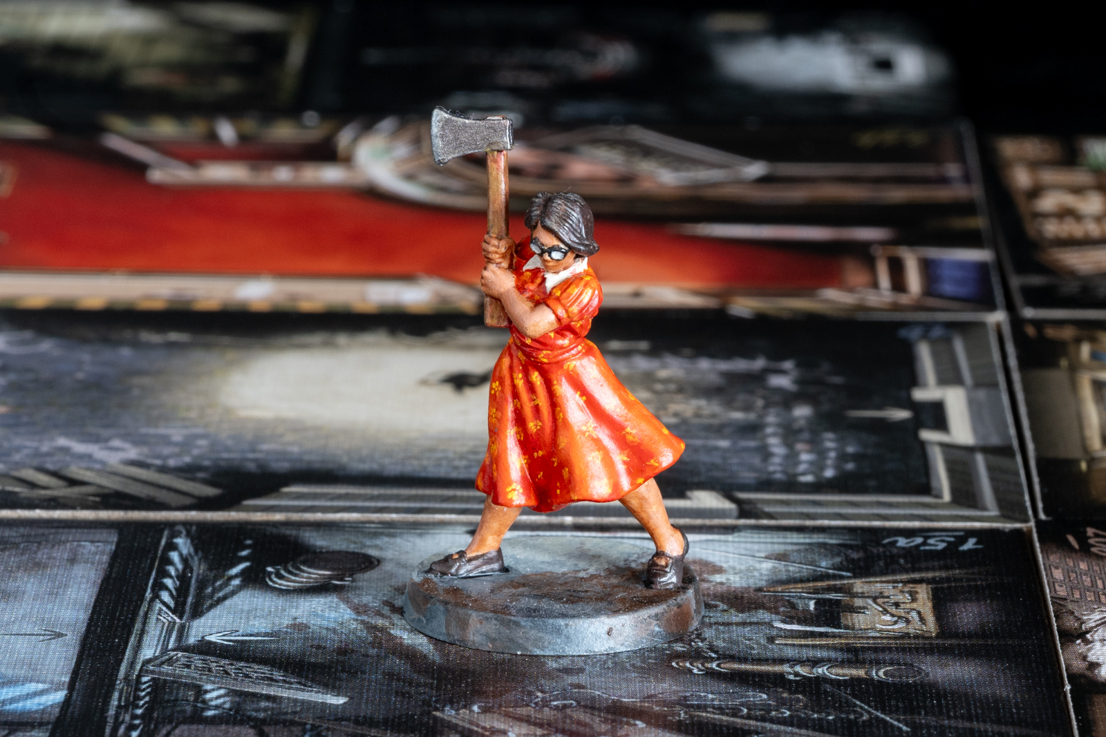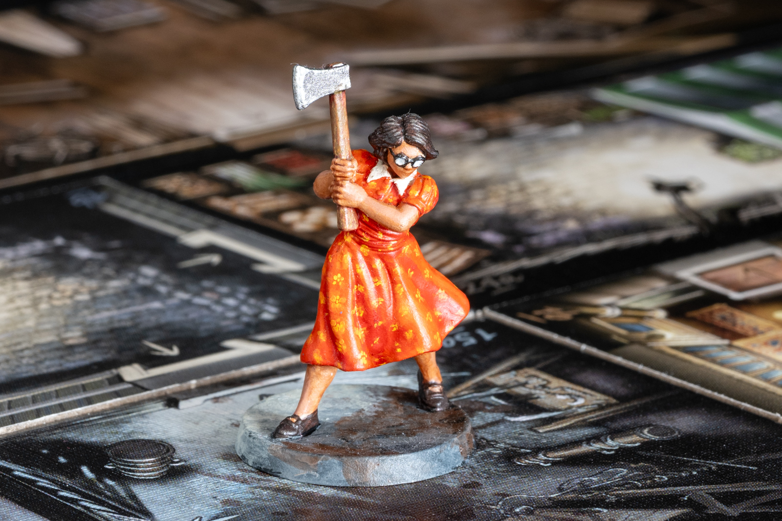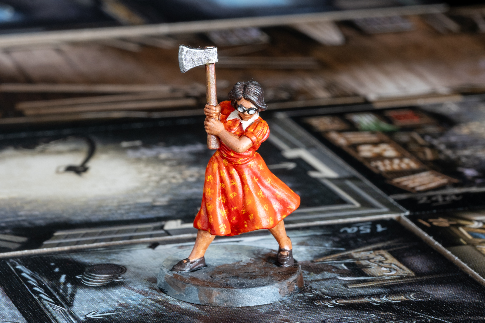 ボーデン。ボードゲーム「クトゥルフ 死もまた死すべし」のコマ。 2023年7月16日に完成したが土台をあとで加筆した。 シタデルをメインに、メタリックな部分はラッカーで塗り分けた後、シタデルのシェイドで陰影をつけ、上からハイライトを塗るなど。