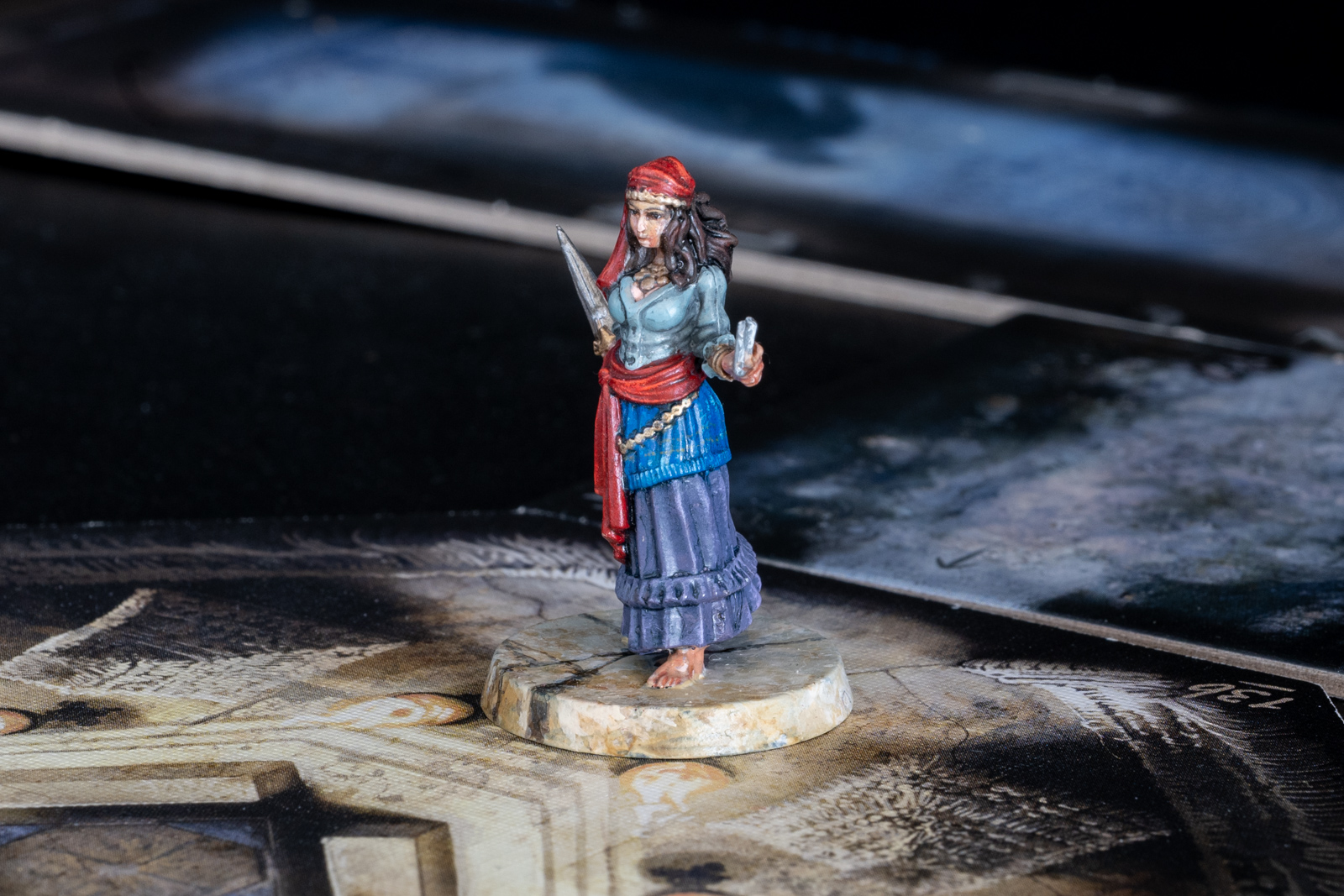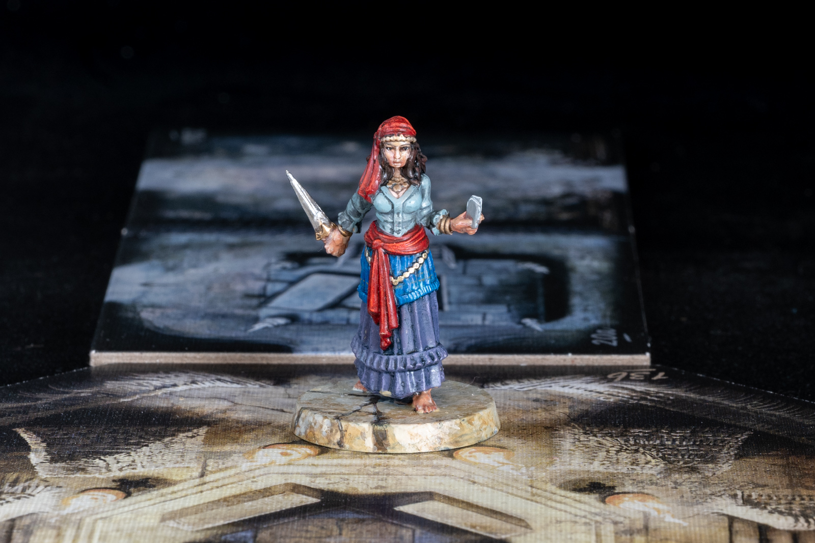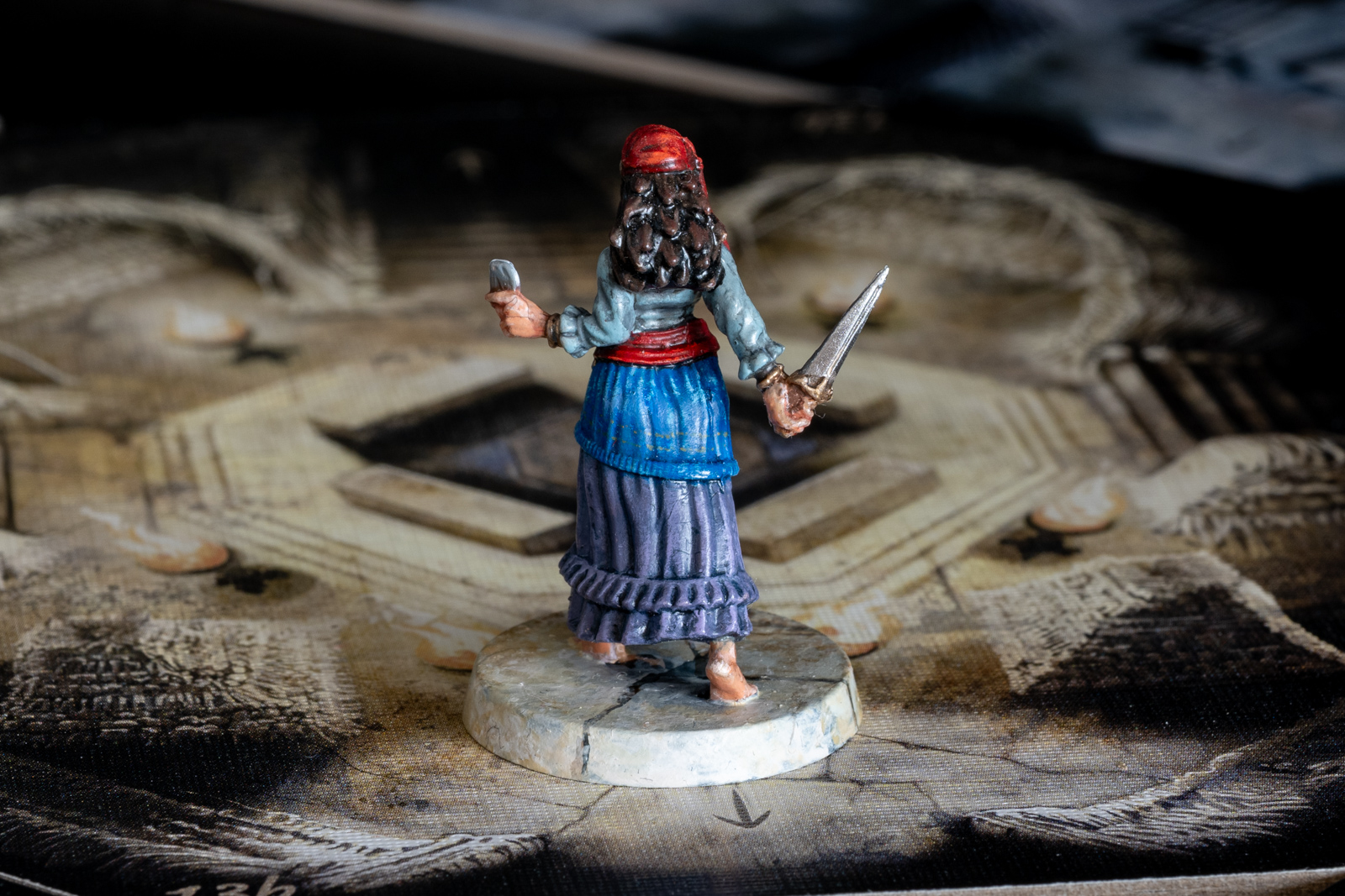 ファティマ。ボードゲーム「クトゥルフ 死もまた死すべし」のコマ。 キャラクターフィギュアも他のゲームと比べると一回り大きく、造形も非常に完成度が高いので塗りやすい。 |