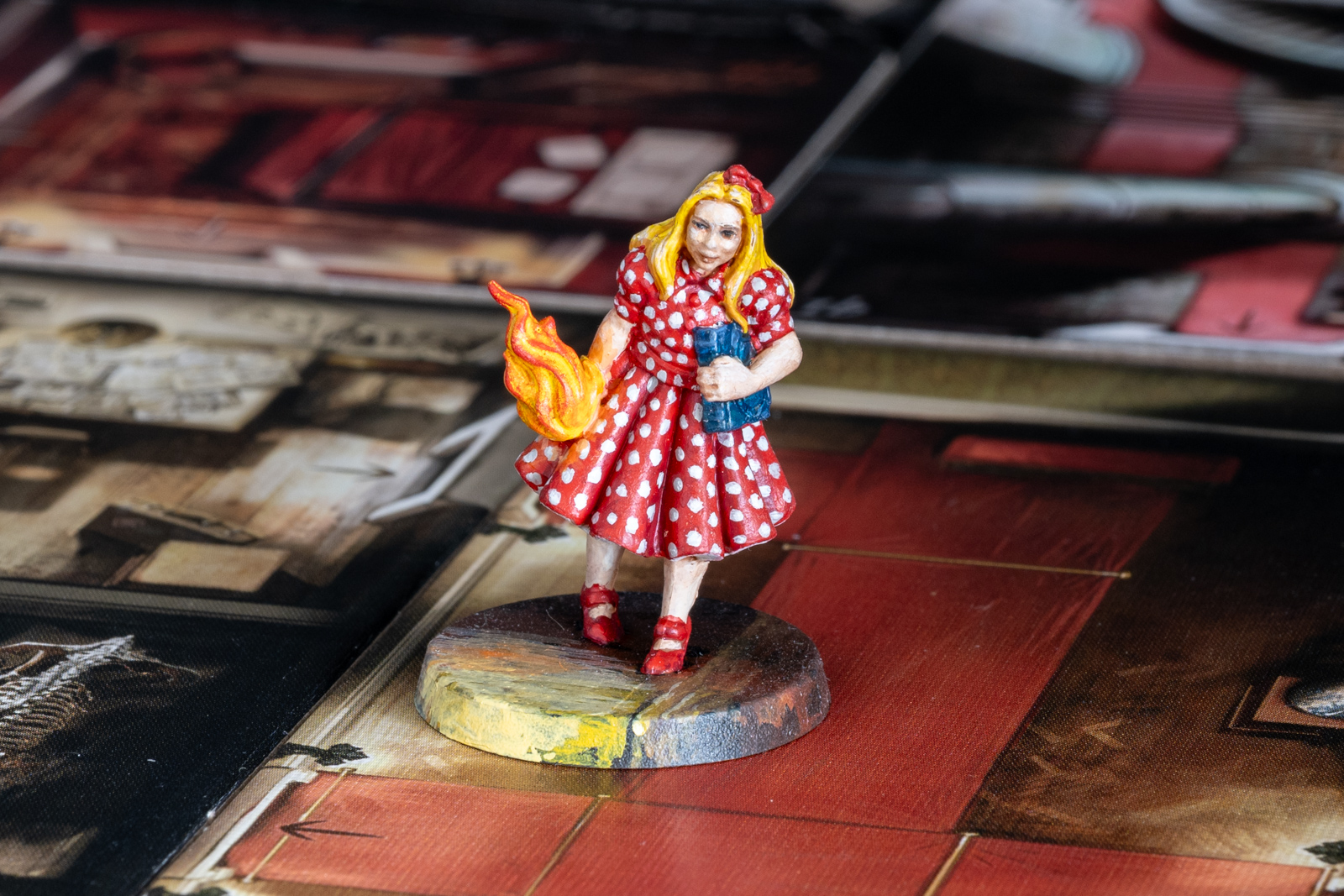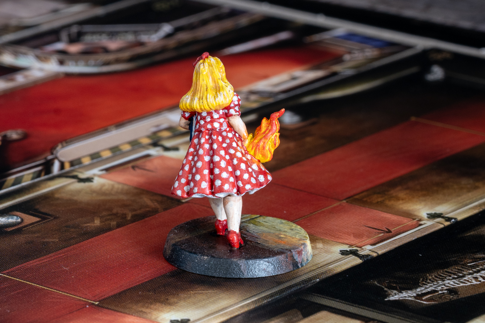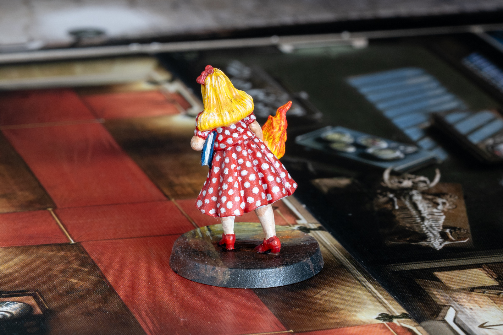 キッド。ボードゲーム「クトゥルフ 死もまた死すべし」のコマ。 2023年6月6日に完成したが土台をあとで加筆した。 シタデルで塗り、目には少しエナメルを使用している。