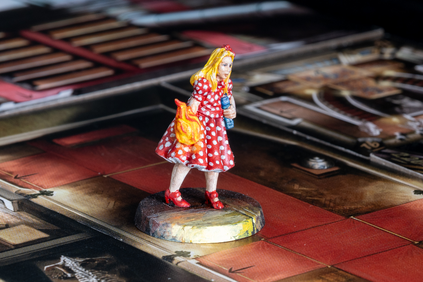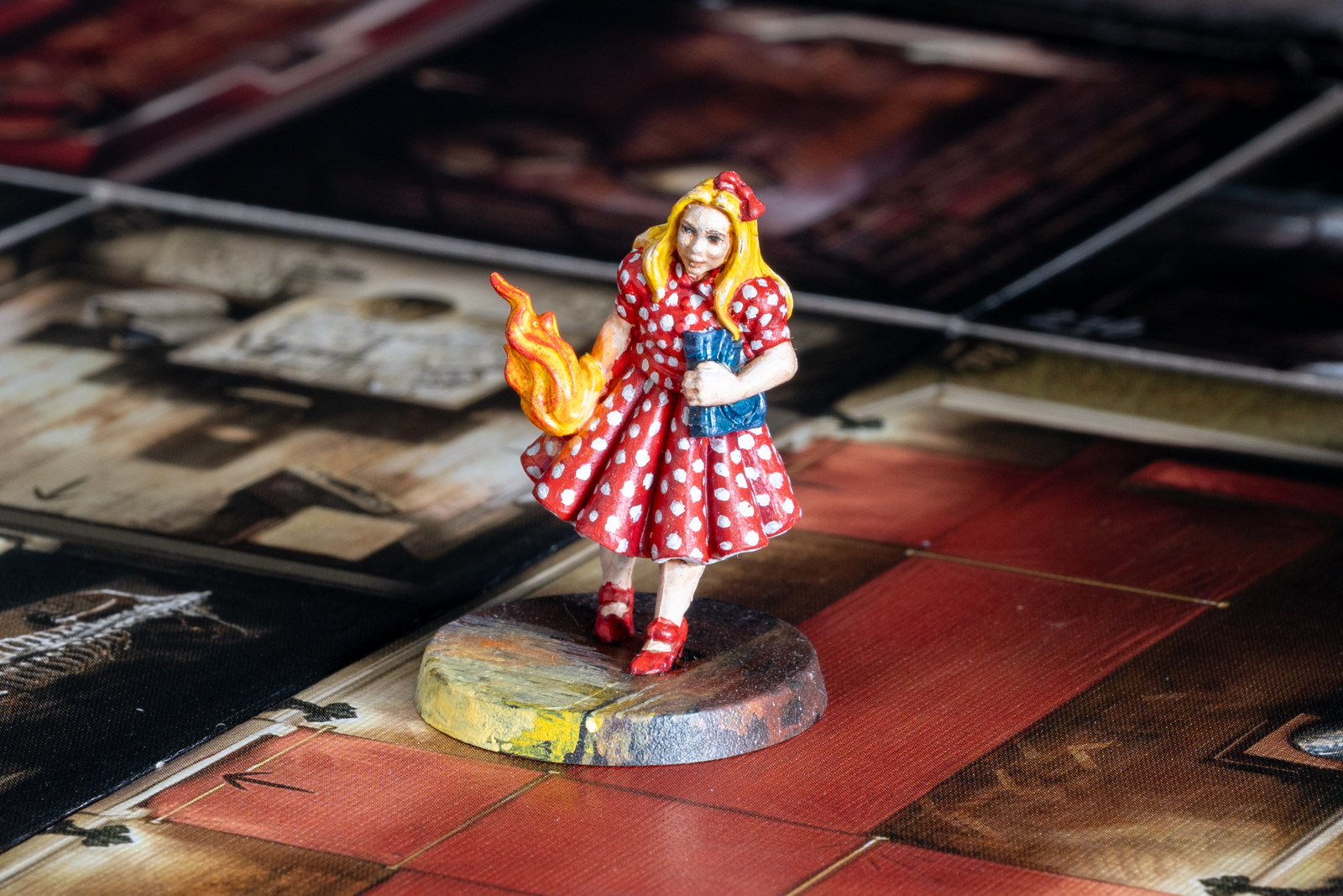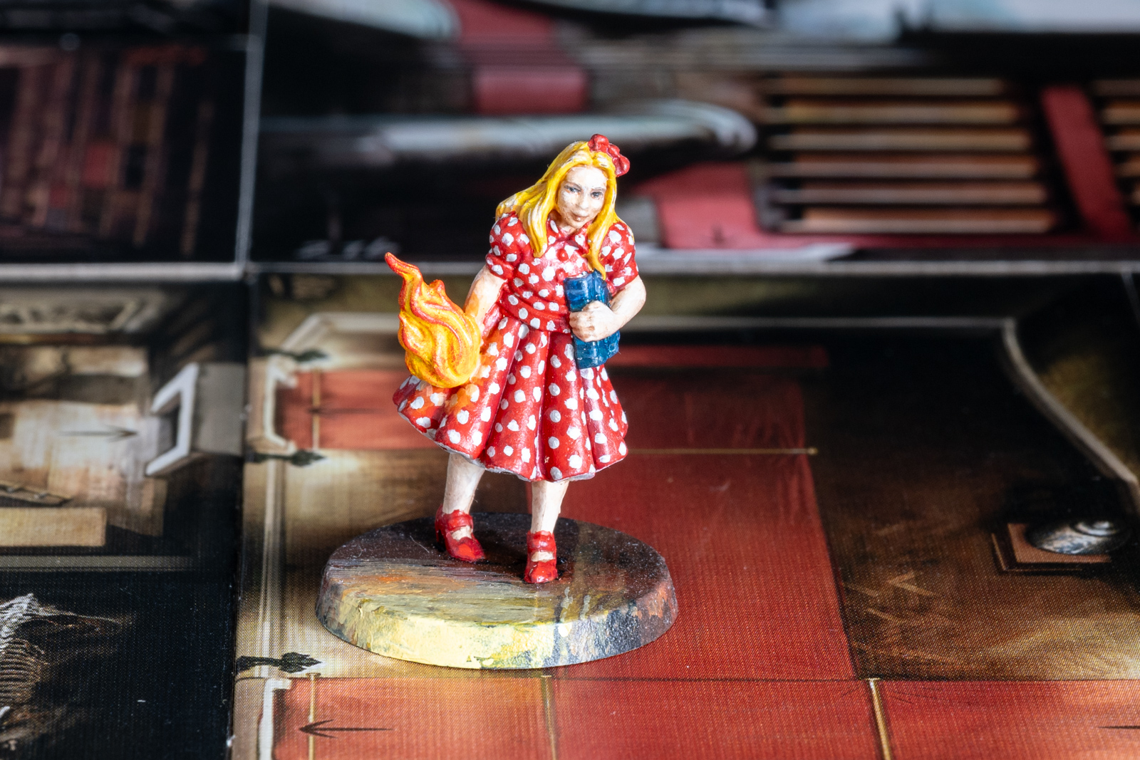 キッド。ボードゲーム「クトゥルフ 死もまた死すべし」のコマ。 2023年6月6日に完成したが土台をあとで加筆した。 シタデルで塗り、目には少しエナメルを使用している。