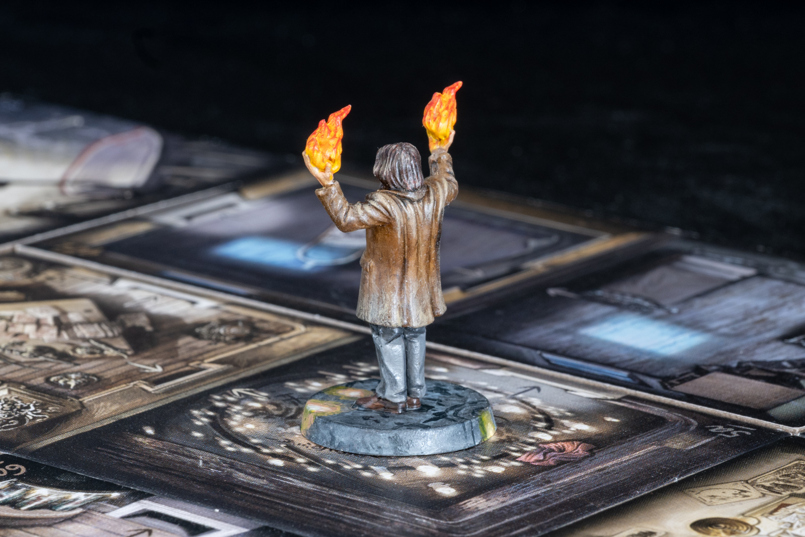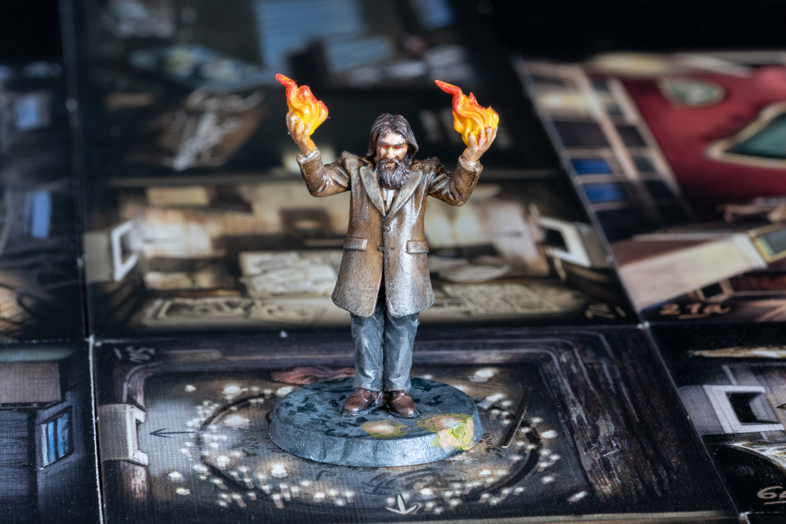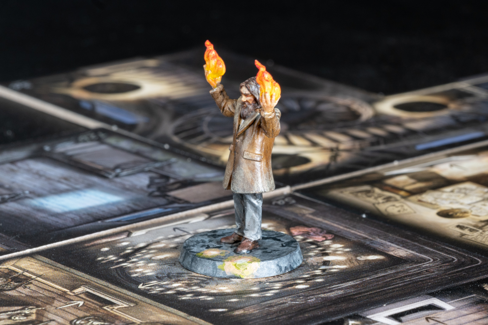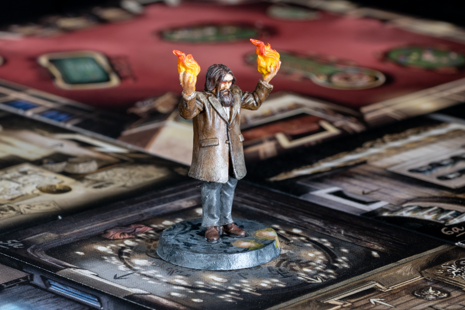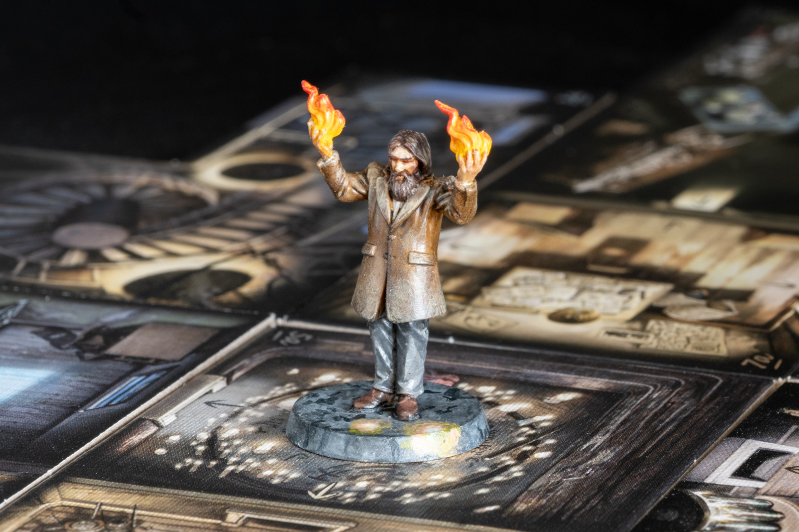 ラスプーチン。ボードゲーム「クトゥルフ 死もまた死すべし」のコマ。 2023年6月15日に完成したが、最近土台部分をタイルに馴染むように加筆した。 シタデルで塗り分けた後、シタデルのシェイドで陰影をつけ、上からハイライトを塗るなど。 目はエナメルの黒に近いグレーを流し込んだのちにシタデルで赤を。