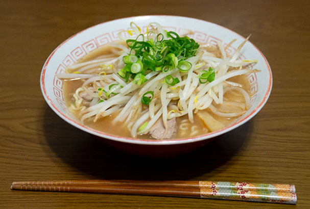 具材:醤油豚、もやし、メンマ、ネギ 金ちゃんヌードルに近いインスタント中華っぽいスープが美味い。 醤油の強い日本のラーメンを想定して食べると腰砕けになるかもしれないが、金ちゃんのスープの独特のバランスはある意味孤高。