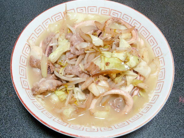 麺は普通の油揚げ麺なのでちゃんぽんなのにちぢれているが、ソフトな食感はまさにちゃんぽん麺。