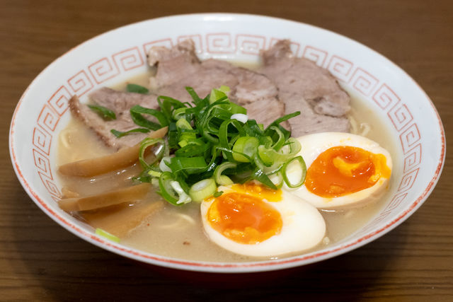 具材:手作りチャーシュー、煮卵、メンマ、ネギ