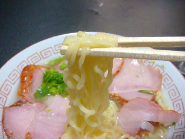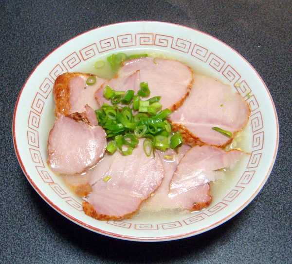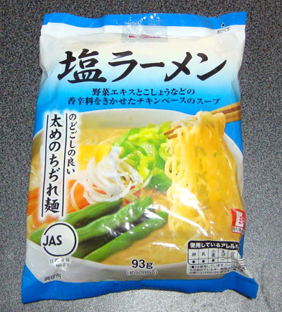 具材:焼豚、ネギ。 焼豚があまっていたので、えい食べてしまえと全部入れたらこうなった(汗)。 スープは「サッポロ一番塩ラーメン」にそっくり。 麺は黄色っぽくてちぢれてる私好みのタイプ。 トップバリューにうまいものはほとんど無いが(笑)、これは意外にいけた。 しかし麺は見た目ほどよろしくなかった。