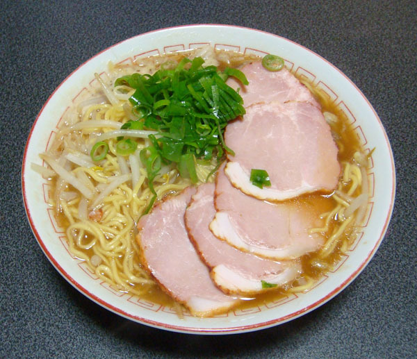 具材:モヤシ、ネギ、焼豚 ノンフライ麺と大量の液体スープのセット。 麺は悪くないが、スープが残念な感じで、イマイチ。 ちうかそもそも私は醤油豚骨スープがあまり好きではない(笑)